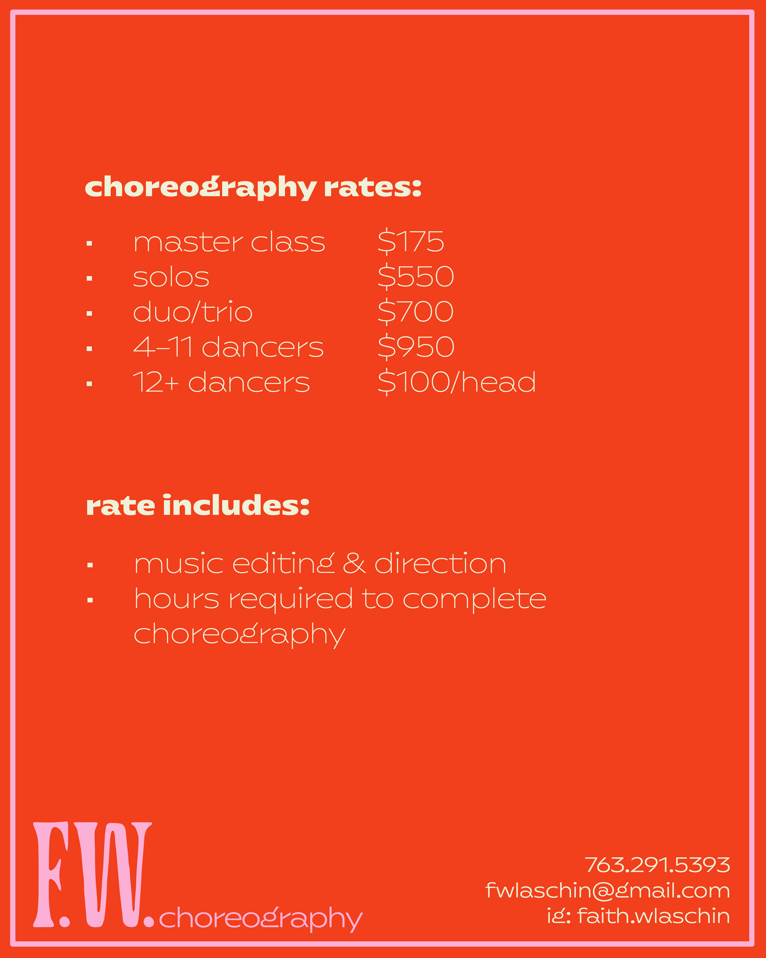 Faith Wlaschin is an award-winning choreographer and dancer based in Minneapolis, Minnesota. She trained at the Saint Paul Conservatory of Performing Artists, where she developed a strong foundation in both performance and choreography. In 2019, she was crowned Miss Showbiz and Miss National Masquerade.